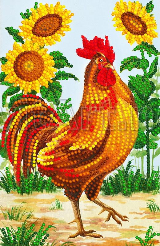 Доп. информация: Схема для вышивки бисером на габардине и атласе "Золотистый петух". Гордый петушок среди ходит подсолнухов.