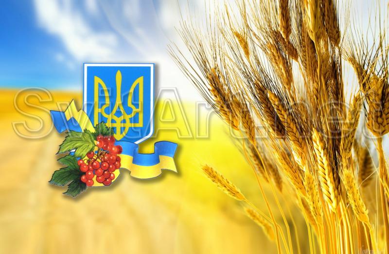 Доп. информация: Холст безрамный "Символы украинского флага". Синее небо и желтое поле пшеницы - символы цветов флага Украины, и рядом герб.
