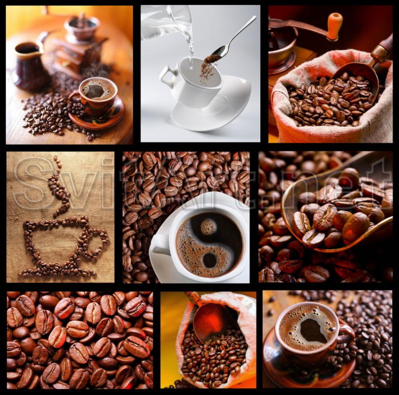 Доп. информация: Холст безрамный "Большая кофейная композиция". Коллаж из девяти кофейных изображений. Кофе много не бывает!