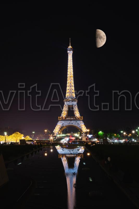 Доп. информация: Холст безрамный "Эйфелева башня ночью". Вид издали на светящуюся вночи Эйфелеву башню и половину луны. Париж, Франция.