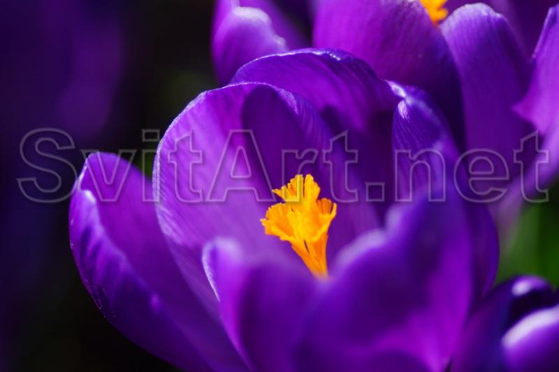 Фиолетовый тюльпан с желтым пестиком на черном фоне - F-317