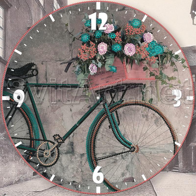 Часы с велосипедом и цветами - CR-006