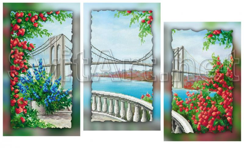 Доп. информация: Магнит для вышивания бисером на холсте модульный триптих "Вид на мост". Замечательный вид с набережной в цветах на мост.