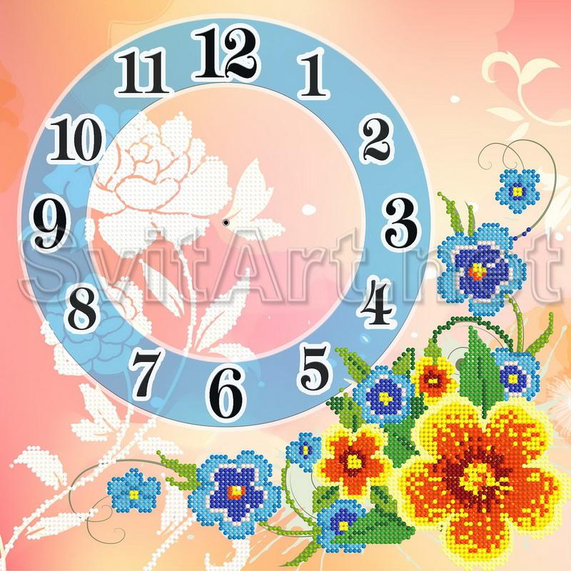 Дод. інформація: Схема для вишивки бісером на габардині і атласі Блакитні квітковий годинник, годинник з квітами. Квіти - квітучі годинник