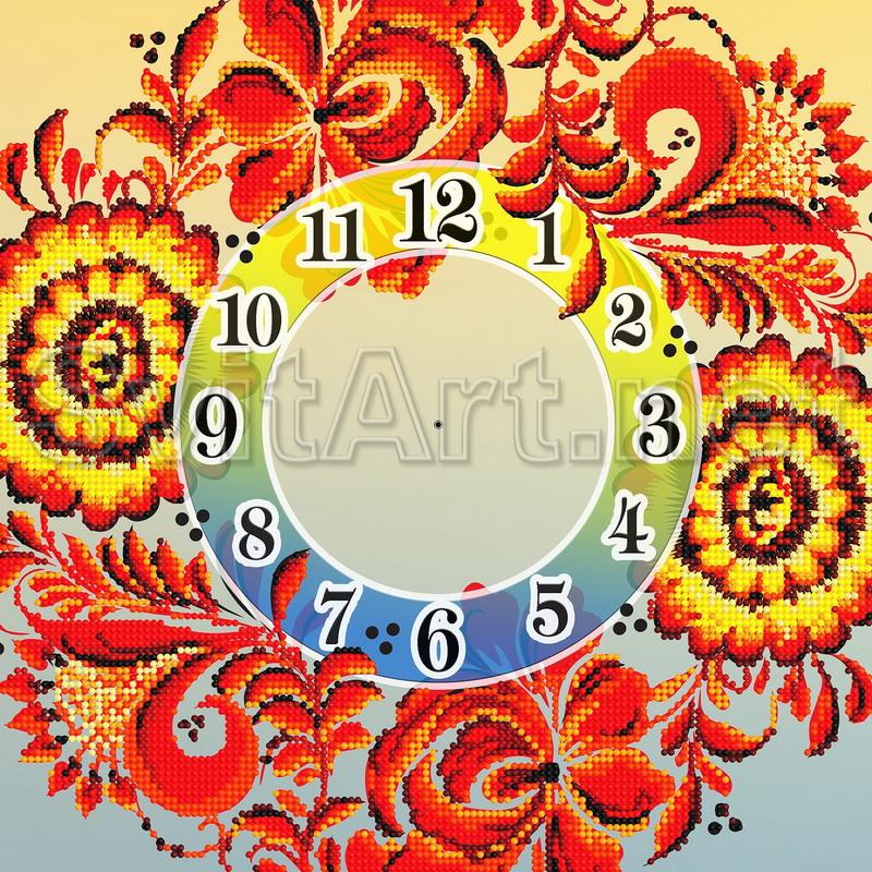 Дод. інформація: Схема для вишивки бісером на габардині і атласі: Жовто-сині годинник з візерунком, годинник з червоним візерунком. Квіти - квітучі візерунки на годиннику.